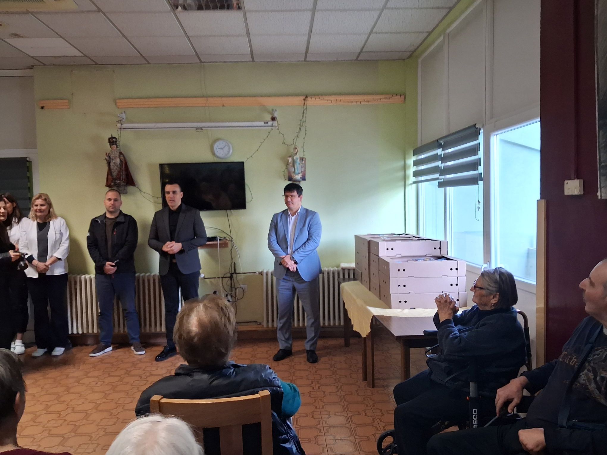 U društvu pročelnika Upravnog odjela za zdravstvo, socijalnu skrb, branitelje i civilne stradalnike iz Domovinskog rata Ante Čupića, župan je korisnicima prigodno podijelio uskrsne pogače.